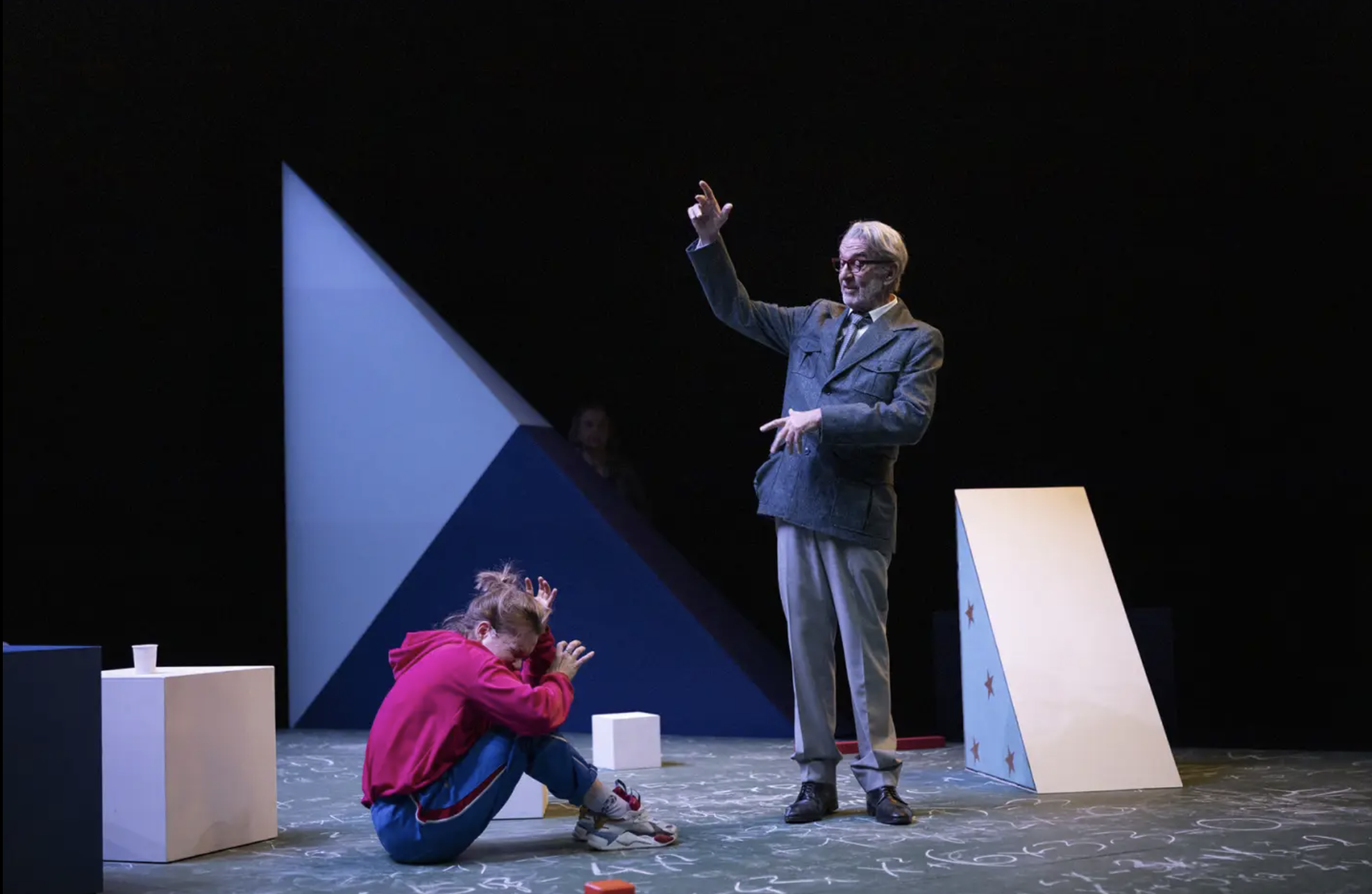 Face à lui, Inès Valarcher, comédienne contorsionniste (ce qui ajoute une dimension supplémentaire à l'interprétation corporelle), incarne l’élève, curieuse et dynamique (malgré ses lacunes manifestes, ou sa logique naïve), mais dont l’énergie initiale se voit peu à peu aspirée – comme le font les « détraqueurs », dans Harry Potter -, paralysée, terrifiée, terrorisée, puis enfin neutralisée, jusqu’à l’effacement total (la mort).