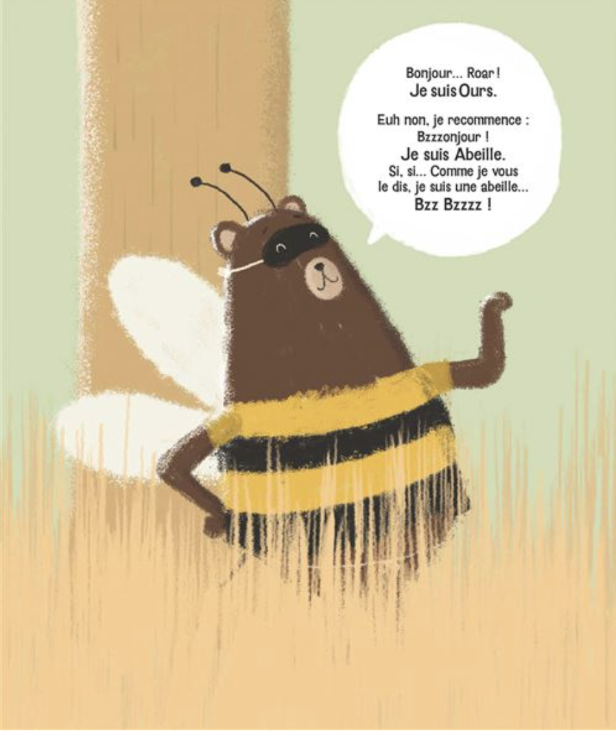 Vous l'aurez compris. Cet ours déguisé en abeille est bien malin car il use de son travestissement pour tromper les autres et se remplir la panse...et ça marche!